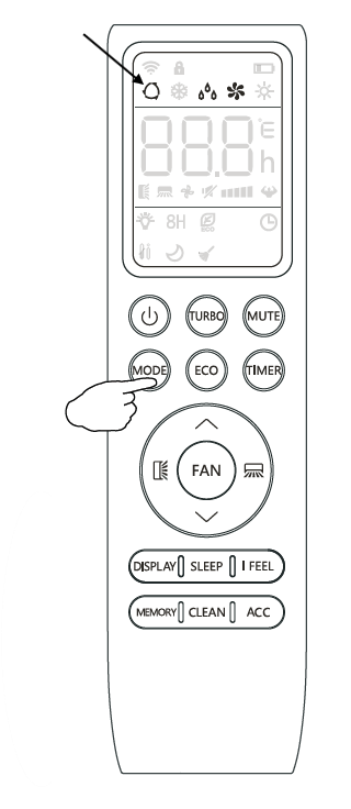 - Press the "MODE" button until the cycle symbol appears on the remote controller's display.