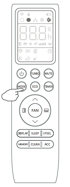 - Press the "MODE" button until the snowflake symbol appears on the remote controller's display.