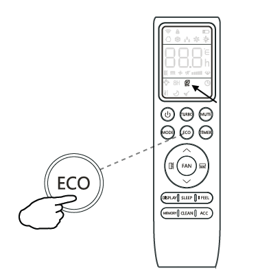 - Press the "ECO" button on the remote controller and the Eco icon will appear.