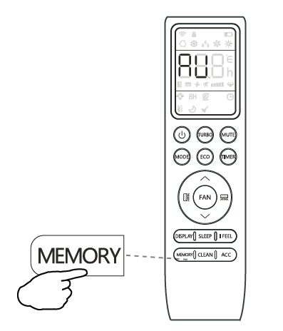 - Enter the desired mode (Heat / Cool / Fan / Dry) and press the MEMORY button to activate the stored configuration.