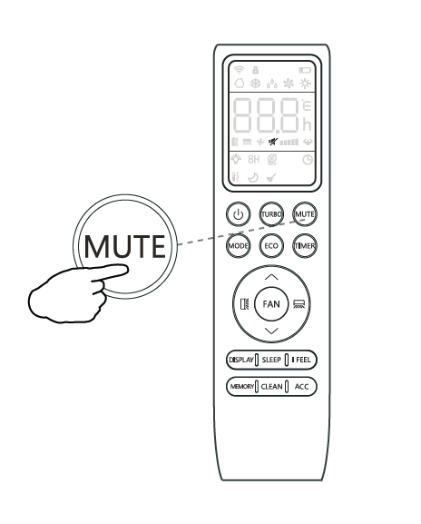 When the system is muted, the indoor unit will operate at its lowest fan speed in order to minimize operation noise. The remote controller will display the auto fan speed.