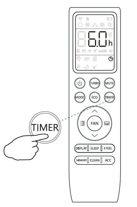 - Press the "TIMER" button again to confirm. Press the "TIMER" button again to cancel the setting.