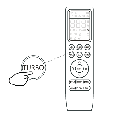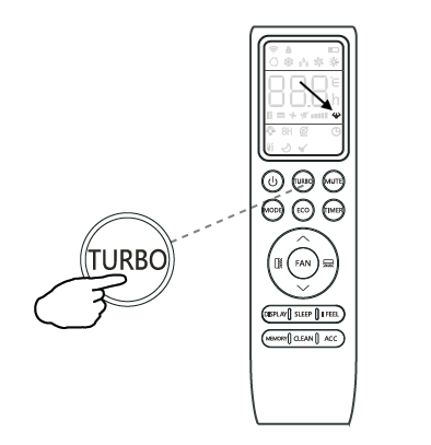 - Press the "TURBO" button on the remote controller. The icon will appear.