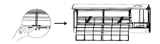 - Keep the front panel raised with one hand, then remove the air filter with the other.