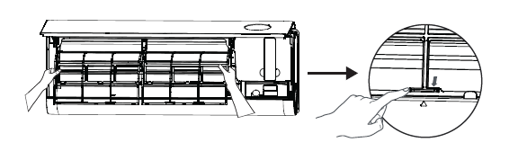 - Keep the front panel raised with one hand, then insert the air filters with the others.