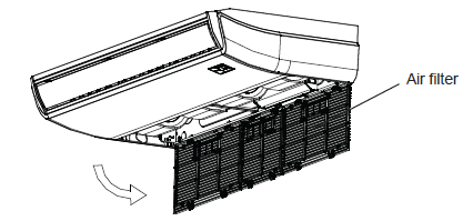 - Approach the interior unit to reach the filter area and unlatch the grille to swivel outward.