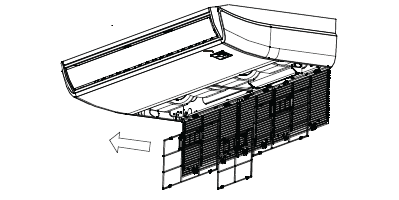 - Gently remove the single anti-dust filter along with the panel grille by sliding it out to the side.