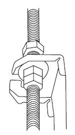 3. Use a hammer to insert the ceiling hooks into the pre-drilled holes. Secure the bolt using the included washers and nuts.