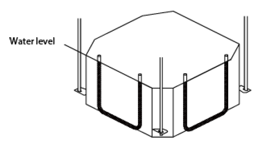 - Ensure the unit is completely level. Improper installation can cause the drainpipe to back up into the unit. The unit is equipped with a built-in drain pump and float switch. If the unit is tilted against the direction of the condensate flow (the drainpipe side is raised), the float switch may malfunction and cause water leakage.