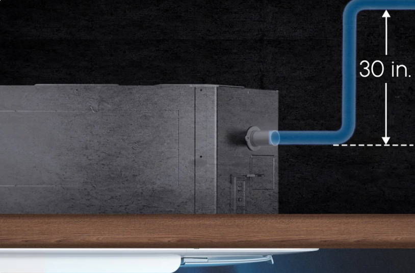 Every cassette system includes a condensate pump that is capable of lifting drainage water up to 30 inches (762 mm). This provides the user more flexibility for routing the condensate water. The pump can easily be disabled if the gravity drain is desired.