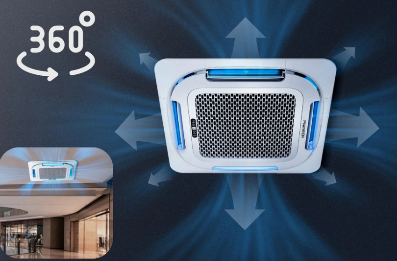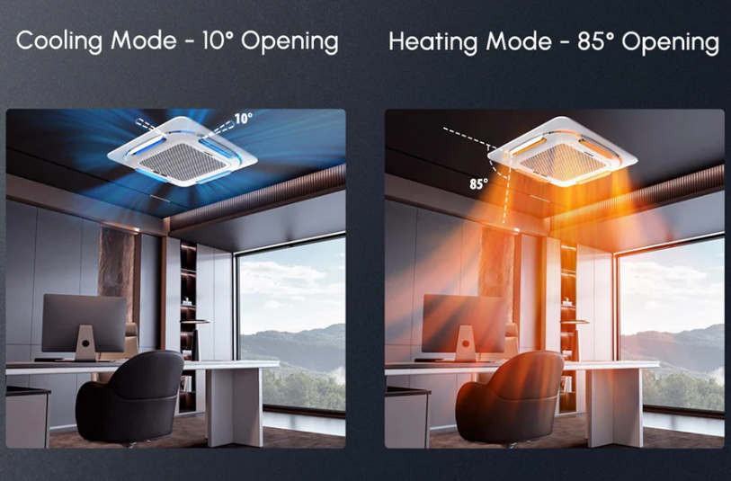 This series offers omni-directional air output, ensuring the conditioned air proportionally reaches all four corners of the room. The innovative design features four sides and four corners of airflow delivery.