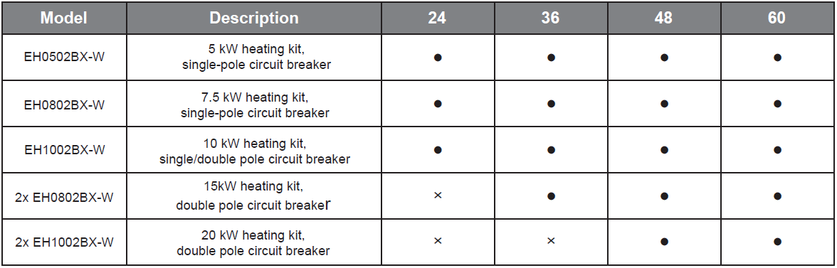 Note: When used without a heat kit, match the feeder wire to the actual circuit breaker rating.