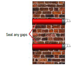 Next, seal any gaps between the duct and wall using appropriate field-supplied materials like silicone or waterproof putty.