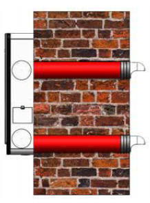 3. Choose a suitable location on the wall where the equipment will be mounted. Mark the intended locations of the outdoor air inlet and and exhaust air outlet. In addition, mark the five mounting holes of the installation panel on the wall according to the ventilator placement.