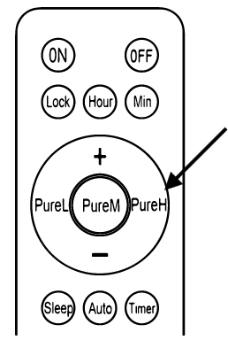 Use the "Pure L", "Pure M", or "Pure H" buttons to rapid improve the indoor air quality. The "Pure L" button is for low, the "Pure M" button is for medium, and the "Pure H" button is for high.