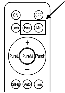 Pressing the "Minute" button will make the minute part of the ventilator screen to start blinking. The minute part is at the top right corner of the screen. Press the "+" button to increase the time, or press the "-" button to decrease the time. Press the "Minute" button again to save the setting and exit the hour-setting mode.