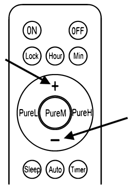 Press the "+" or "-" button to change the fan speed.