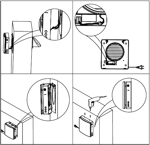 The strong magnet equipped on the back of the main unit will automatically attract the wall mounting plate.