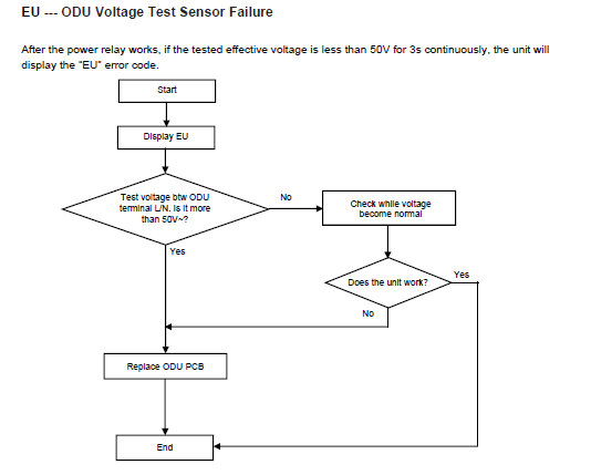 After the power relay operates, if the tested effective voltage is less than 50v for 3 seconds continuously, the unit will display the error code.