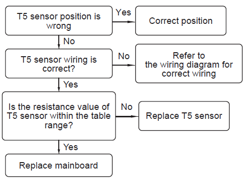 The "F5" error code indicates a T5 exhaust temperature sensor failure. This article is for Vertex Ducted Central Split (DYC-18) systems.