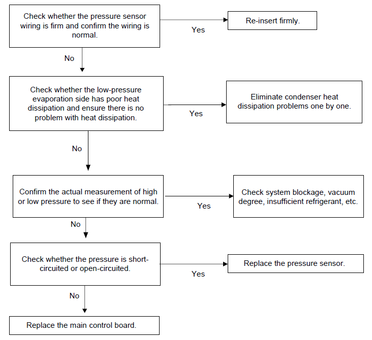 - Check whether the pressure sensor wiring is firm and confirm the wiring is normal.