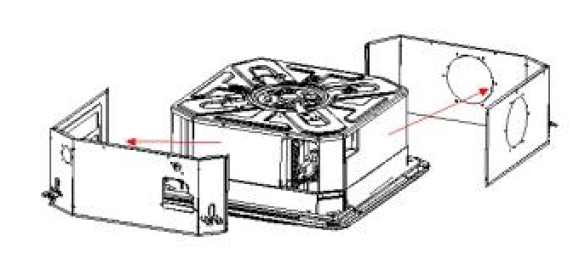 A. Unfix the screws on the electric control box, water tray assembly, and air guide in the direction shown in the photo.