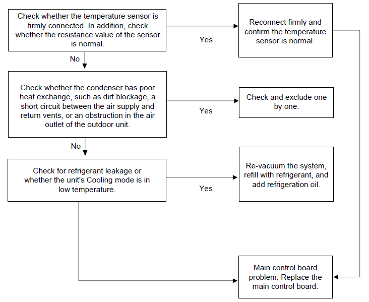 - Begin by confirming whether the indoor coil is frozen. If it is frozen, check the pipe system. If there is no icing, check the T2 sensor or the indoor board.