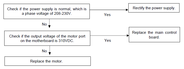- Check if the power supply is normal, which is a phase voltage of 208-230V. Confirm that the power supply is properly functioning.