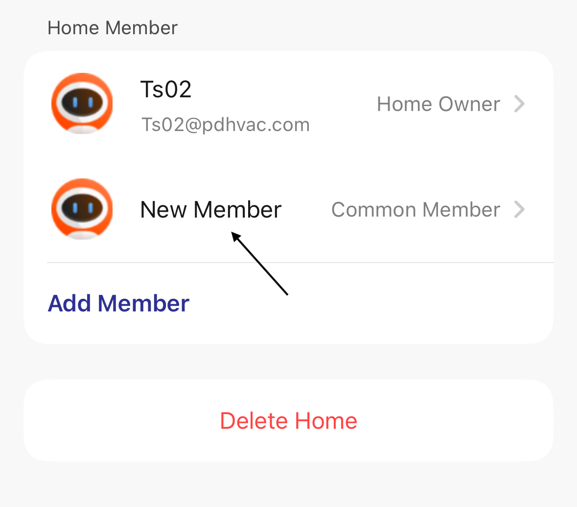 Users, or members, can configure a personalized home in the app settings to conveniently control temperatures and functions in different areas of their house. Additional users can be added to home management settings.