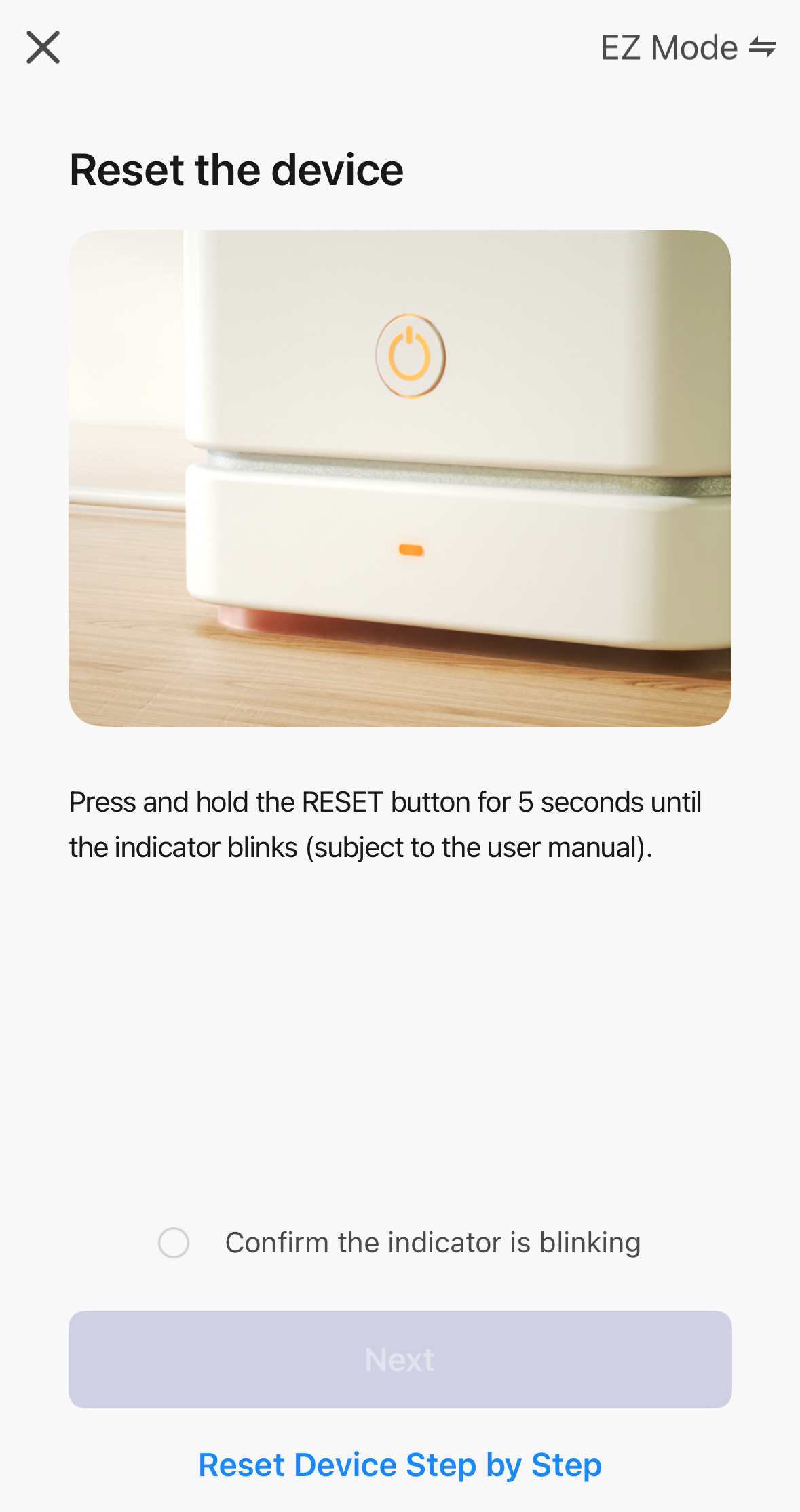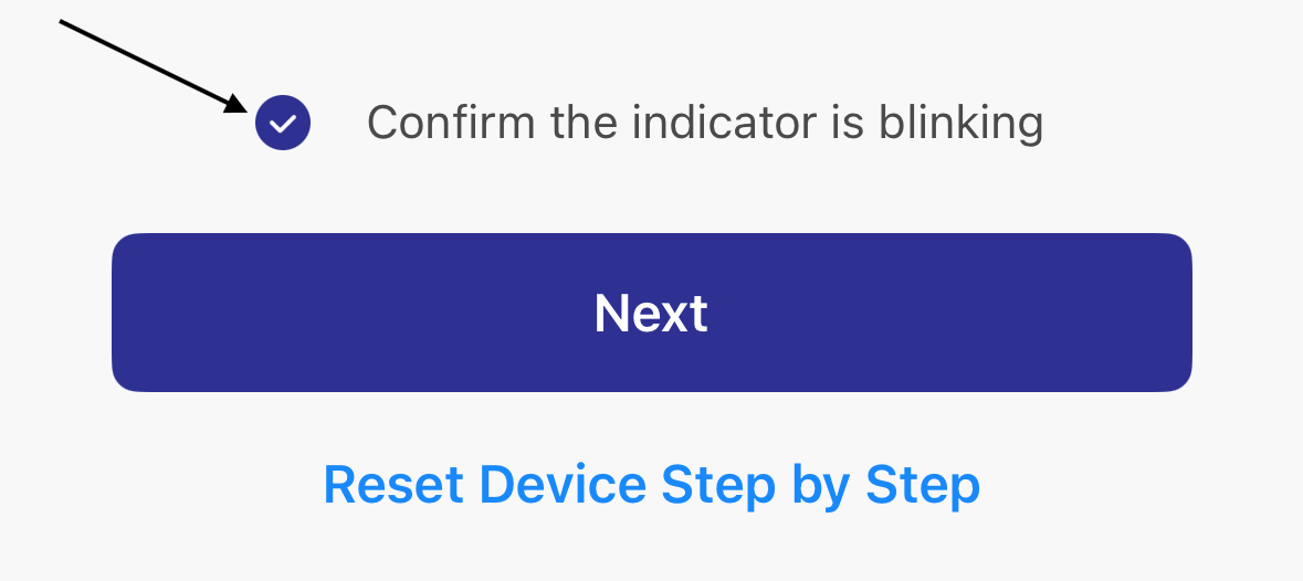 Toggle the "Confirm the indicator is blinking" checkmark, then tap "Next".
