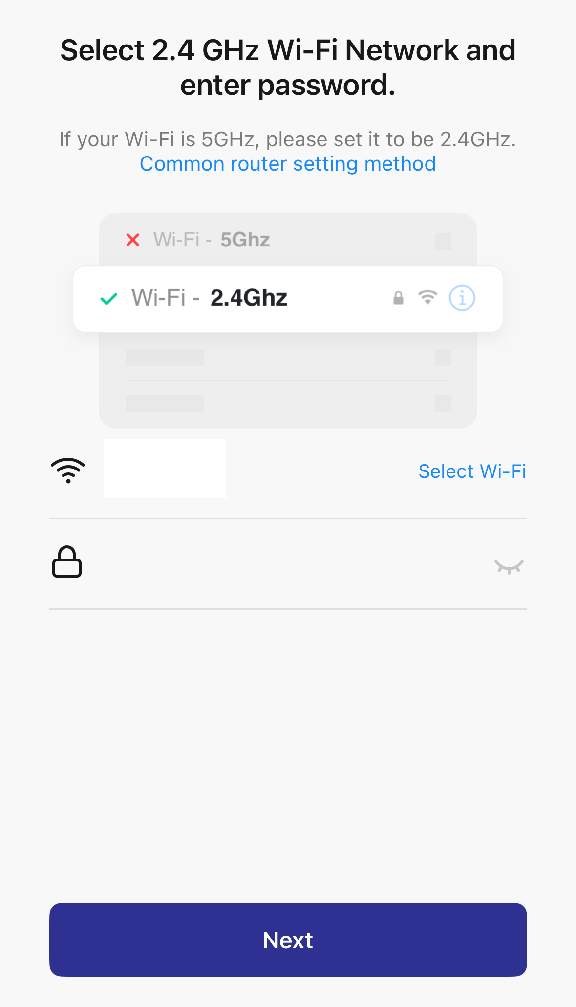 4. Select the Wi-Fi network and enter the password for the network. Then tap "Next".