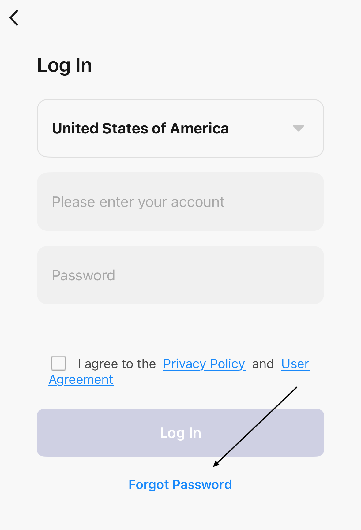 Users can change their login passwords before or after logging into the app. Users can tap "Forgot Password" in the login screen to reset their password, or access the app settings to reset it. Both procedures are listed below.