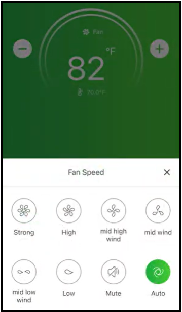 Users can change the fan speed of the air conditioner by using the fan speed selection function.
