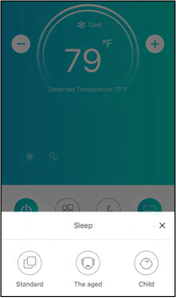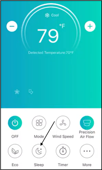 Users can activate the sleep function during periods of lesser cooling and heating requirements in order to decrease energy use. The sleep function is generally activated during typical sleeping hours.