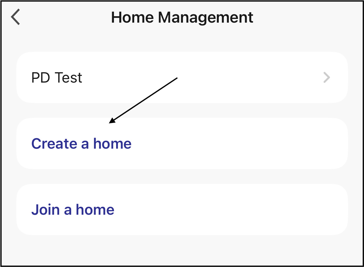 Additional homes can be created by tapping "Create a home".