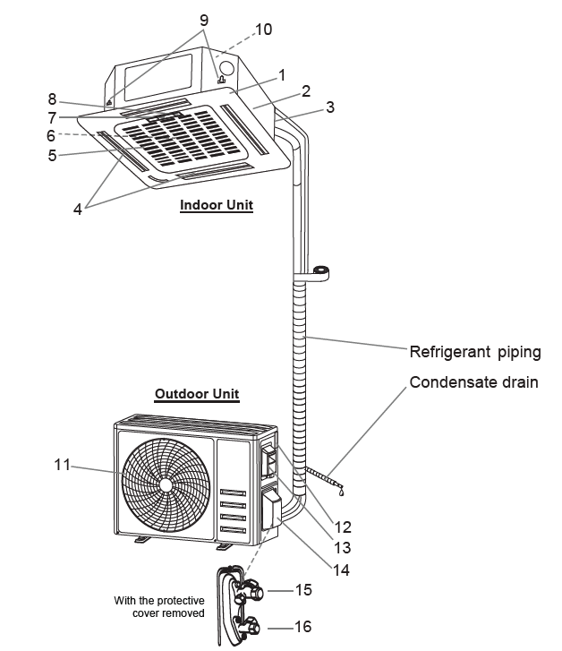 This series is equipped with digital frequency control for automatic capacity adjustments, a convenient remote controller, and automatic air-sweeping louvers. The series also includes Cooling, Heating, Dehumidification, and Ventilation modes. Ceiling cassette ductless mini split systems also come with remote supply ducting and fresh air intake options.
