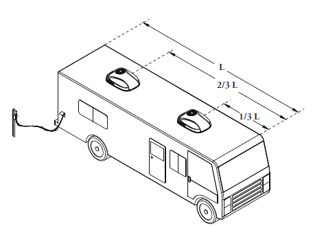 - When installing two air conditioners, the units should be positioned at the 1/3 and 2/3 points from the front end of the RV. The units should also be centered between the left and right sides.