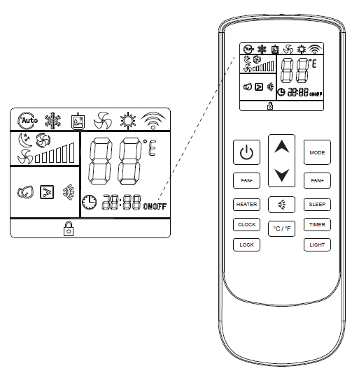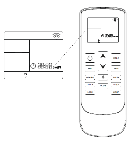When the Timer Off button is first pressed, the symbol on the display will be flashing to signify this feature is being set. Pressing the button once more will confirm the data entered, and the icon will remain solid to indicate that the Timer Off function is set. Pressing the button a third time deactivates the Timer Off function.