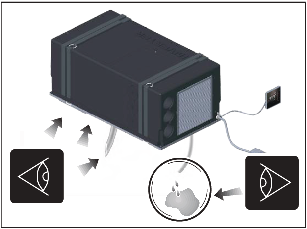 It is recommended to periodically inspect the system, particularly the points of drainage, as well as the air intake points.