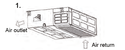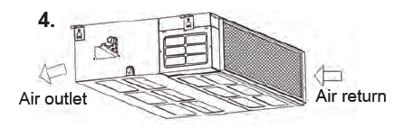 The indoor unit comes pre-configured for downward air return, but can be modified for rear (backward) air return if needed.