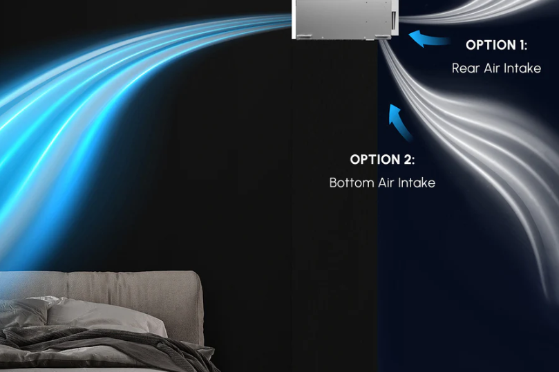The air handler can be easily modified to pull in return air from the bottom or rear side. Simply move the air intake cover to the side that will not be used and you're all set.