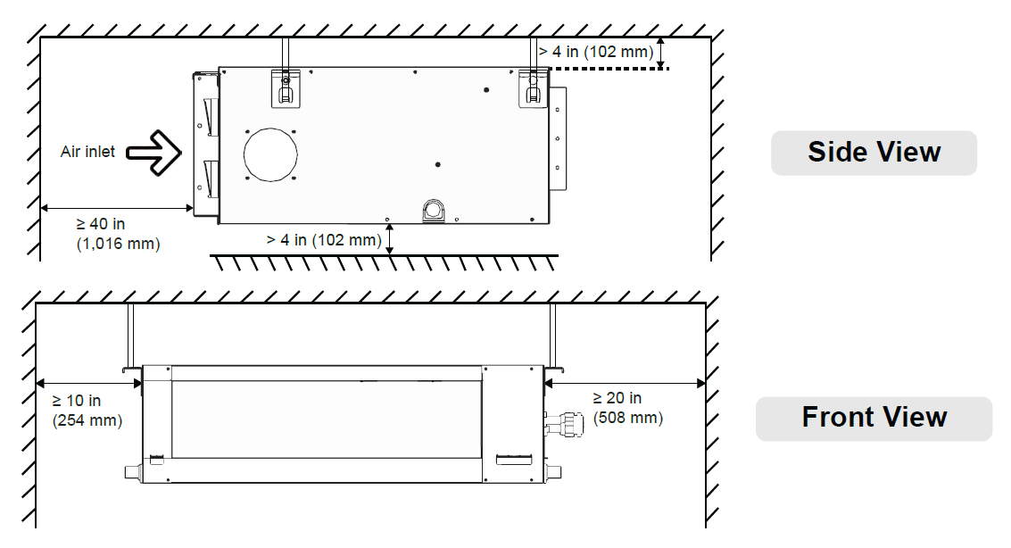 - Install the unit in a well-ventilated location with sufficient clearance for proper airflow, maintenance, and servicing.