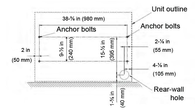 - The center-to-center distance between the bolts must match the specifications provided for the unit size.