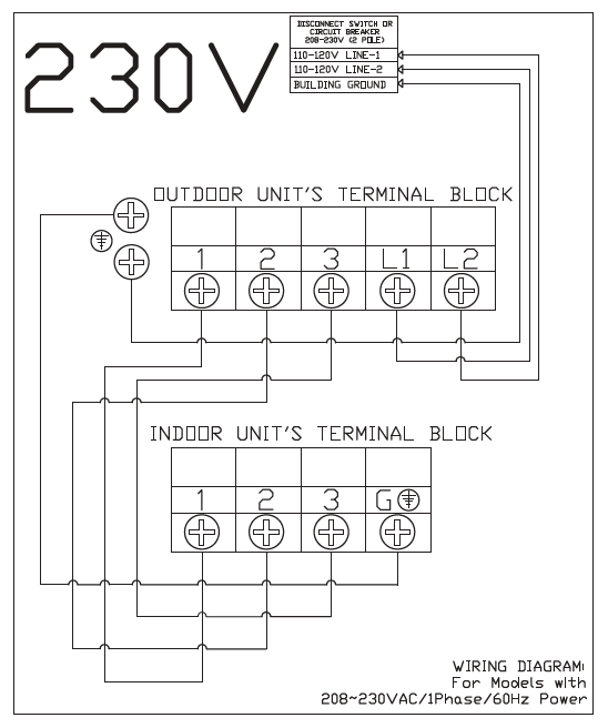 Consult the diagram affixed to the indoor and outdoor units respectively for specific wiring instructions.