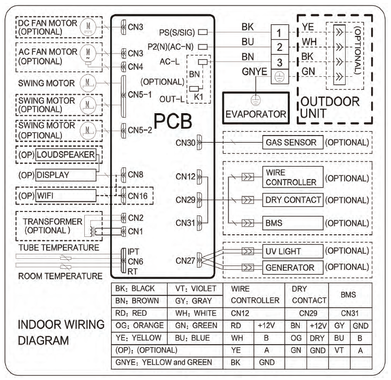 If the indoor unit is configured with a refrigerant leakage detection sensor from the factory or will be configured for one later, follow the alternative control board wiring diagram below: