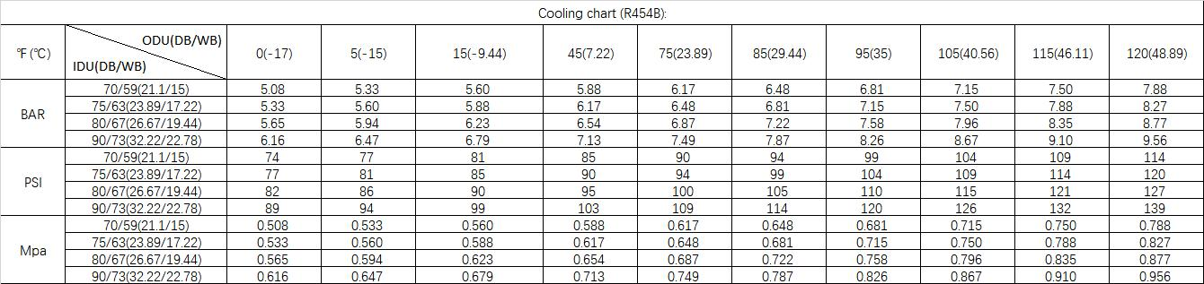 System Pressure Table