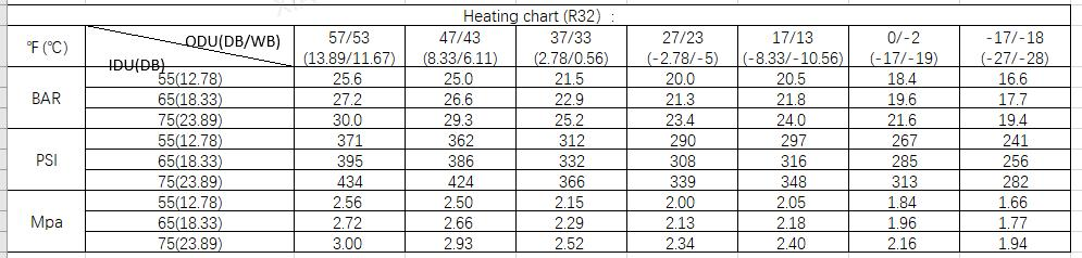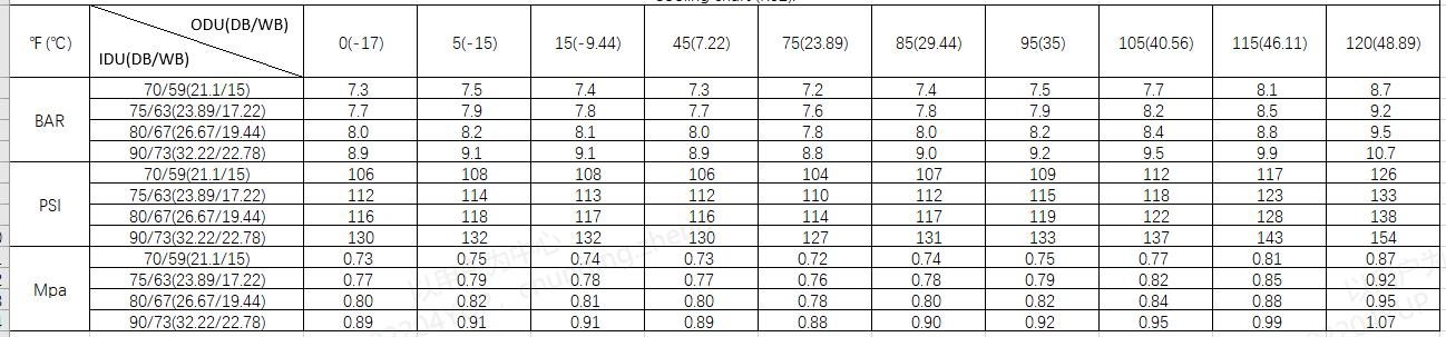 System Pressure Table