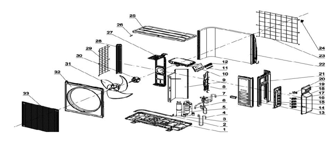 This article includes the parts list for outdoor unit of the YN040GLSI24M4G system. This system is part of the Quantum Ultra Multi-Zone Outdoor Unit (YNL-24) series.